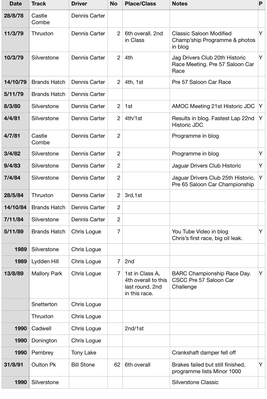 These are the races WPX competed in that I know about, Iād be pleased if anyone could fill in any of the gaps. Please get in touch if you can help!
